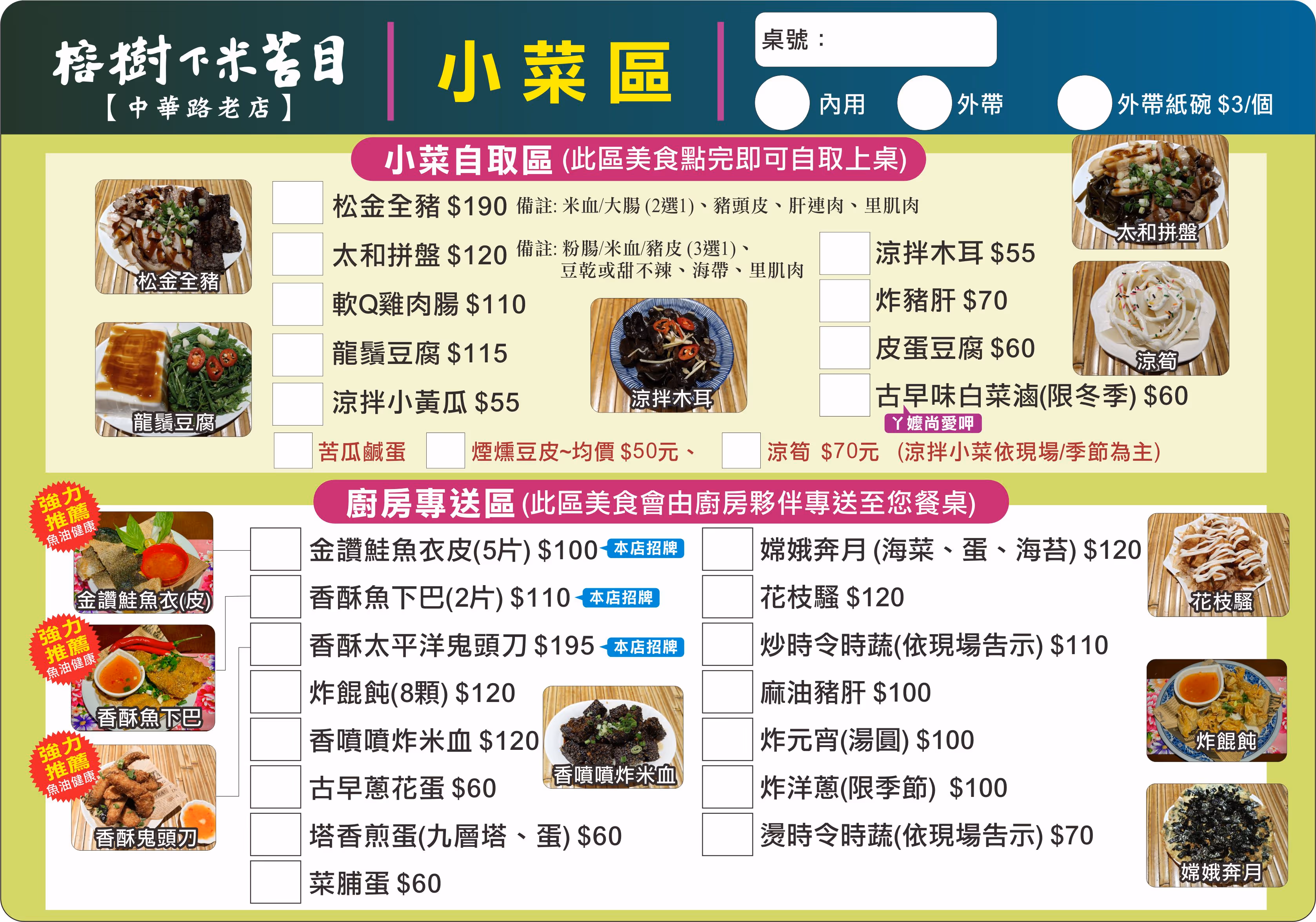 店內販售乾的米苔目與湯的米苔目兩種,皆分為小碗 $55、大碗 $60,大碗只多$5份量更足非常划算。建議搭配滷蛋一顆$15或加點太和拼盤$120,一碗米苔目配一份小菜就是最滿足的經典組合,兩人用餐總消費約$200-$300之間。